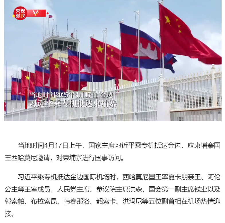 獨(dú)家視頻丨習(xí)近平步出艙門(mén) 柬埔寨國(guó)王西哈莫尼熱情迎接
