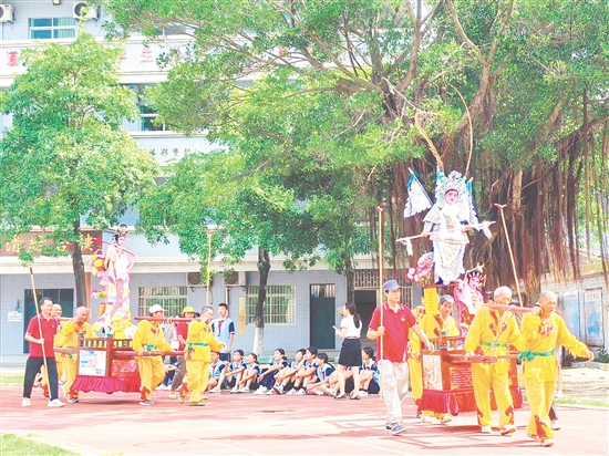????臺山浮石飄色是始于明末清初的一種傳統(tǒng)特色民間文化造型藝術(shù),于2008年入選國家級非物質(zhì)文化遺產(chǎn)名錄,它既是臺山民間藝術(shù)的瑰寶,也是臺山民間信仰、宗族文化和村落文明的重要表現(xiàn)形式。近年來,臺山通過組織展示展演、技藝培訓(xùn)、撰寫出版專題著作等方式,致力于推動臺山浮石飄色的發(fā)展與傳承。接下來,臺山將繼續(xù)合理利用校園這一平臺,進(jìn)一步在未成年人群體中傳承推廣臺山非遺,激發(fā)青少年參與非遺保護(hù)傳承的興趣和熱情。