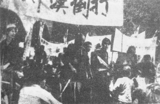 ????1942年七八月間,紅線女跟隨馬師曾帶領(lǐng)的劇團(tuán)進(jìn)入廣西演出。為了配合抗日宣傳以及為抗戰(zhàn)籌款勞軍,他們演出馬師曾自己編寫、痛斥漢奸賣國賊的《洪承疇》等戲劇,借古諷今。其中有一段唱道:“衰漢奸、病漢奸,千刀千刀理該斬……”由獨唱到全場合唱,節(jié)奏由慢而快,氣氛熱烈,整個劇場掌聲雷動,群眾不由得振臂高呼“打倒?jié)h奸賣國賊!”