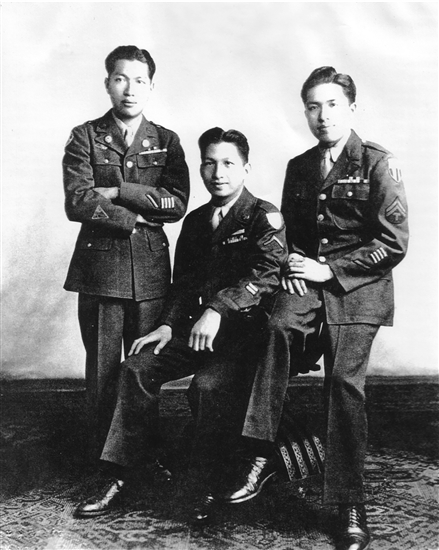 ????工作6個月后,恰逢美國陸軍第14航空隊第14空勤大隊組建,美國戰(zhàn)務(wù)部獲知余新賢領(lǐng)導(dǎo)的團(tuán)隊正服務(wù)于第5空軍服務(wù)司令部,于是他受命向美國政府作報告,并率領(lǐng)全體隊員于11月20日、21日入伍,他們成為第14空勤大隊第一批應(yīng)征入伍的華人隊員,余新賢獲任司令少尉。此后,他積極奔走,開展宣傳發(fā)動,招募更多華人參加飛虎隊,最終應(yīng)征加入第14空勤大隊和第987特別通訊連的約有1600人。受余新賢感召,他的三位堂弟余新振、余新倫、余新偉先后加入飛虎隊。