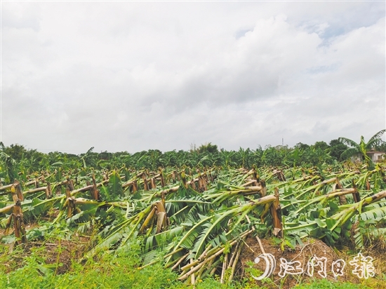 恩平市某香蕉種植場臺風過后景象,當前正在加緊恢復生產(chǎn)。