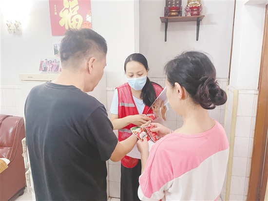 “您家陽臺綠植較多,容易積存雨水孳生蚊蟲……”在蓬江區(qū)白沙街道興盛社區(qū),江門市直機關工委黨員干部李寶珠與社區(qū)網(wǎng)格員一同上門,邊發(fā)放滅蚊煙片邊講解“一關二放三點四通”使用要領,并幫助居民清理陽臺綠植積水?!拔覀儾粌H派發(fā)物資,更要教會方法、清掉死角?!崩顚氈檎f。