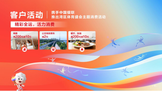 同時,廣發(fā)銀行即將推出銀聯(lián)消費優(yōu)惠活動。活動期間持有廣發(fā)銀行“社保一卡通”的大灣區(qū)市民,除了可以享受公交互聯(lián)互通、景區(qū)文旅、長者飯?zhí)?、醫(yī)保消費權(quán)益之外,還可以在廣東省內(nèi)多家熱門商圈、特色食肆、加油站疊加享受刷卡消費滿減的實惠福利。