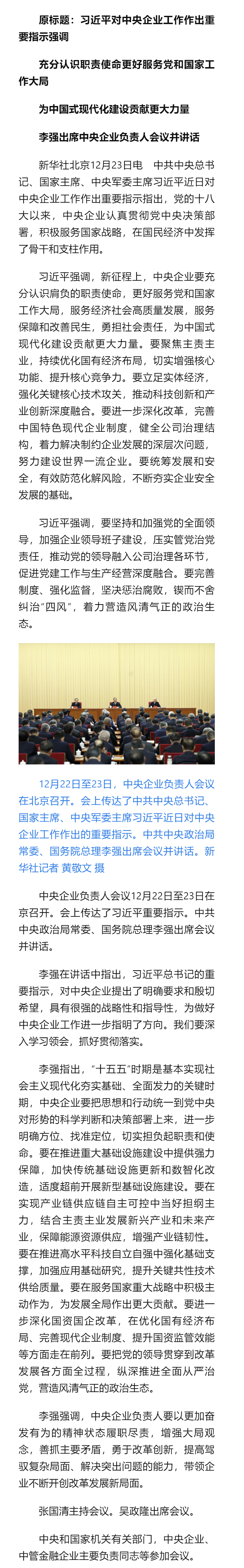 習(xí)近平對(duì)中央企業(yè)工作作出重要指示
