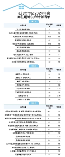 ????上周,市自然資源局發(fā)布江門市區(qū)(蓬江、江海、新會(huì))2024年度建設(shè)用地供應(yīng)計(jì)劃,引起了高度關(guān)注。在本次供應(yīng)計(jì)劃中,商住用地約92.9公頃(1393畝),其供應(yīng)量與去年相比基本持平。