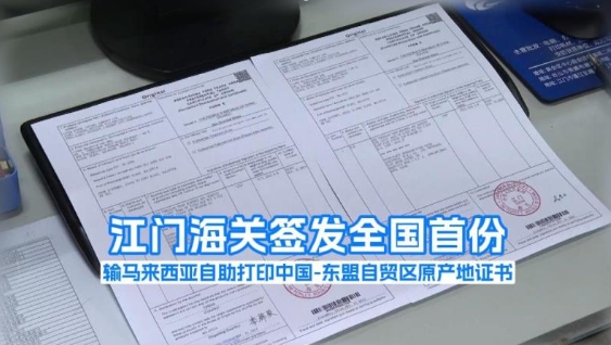 江門海關(guān)簽發(fā)全國首份輸馬來西亞自助打印中國-東盟自貿(mào)區(qū)原產(chǎn)地證書[2024-09-01 12:41]